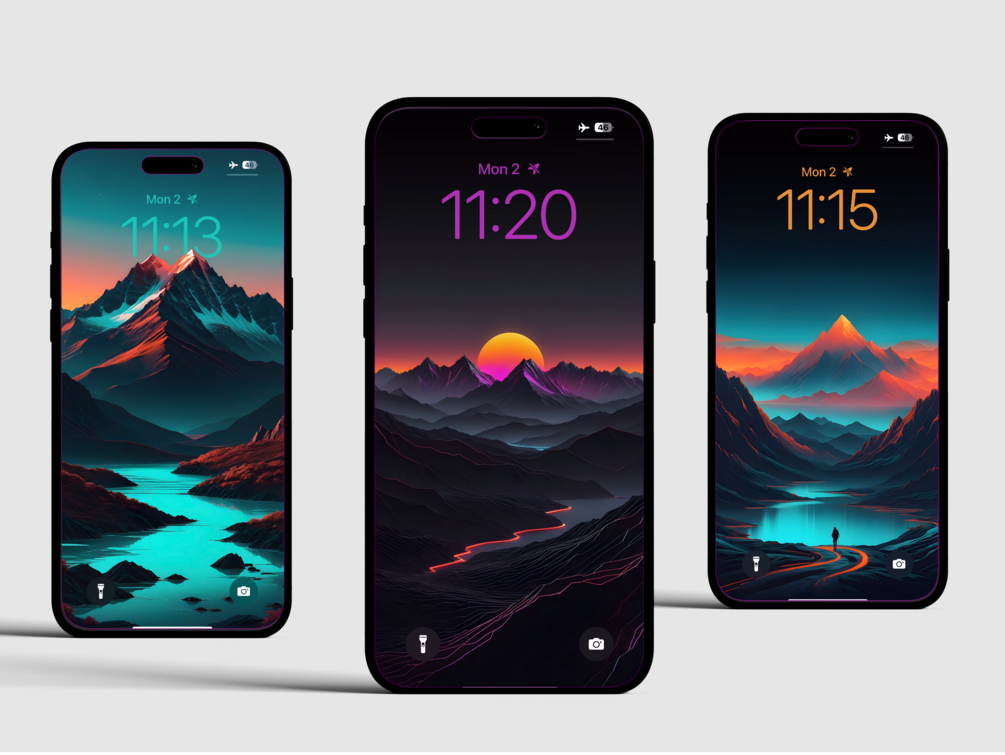 Transform your iPhone with 6 stunning mountain landscapes, each one crafted to capture the beauty of distant peaks, serene lakes, and the colors of dusk.